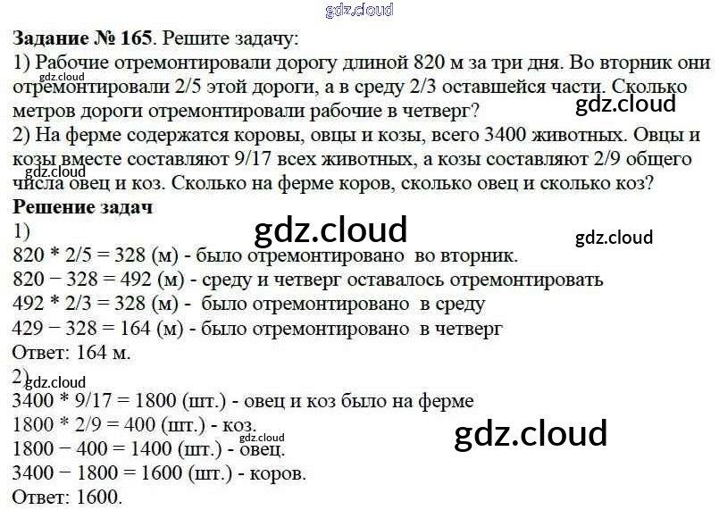 Ответ на задание 165 Учебник Математика за 6 (шестой) класс Виленкин, Жохов, Чесноков, Шварцбурд 2014