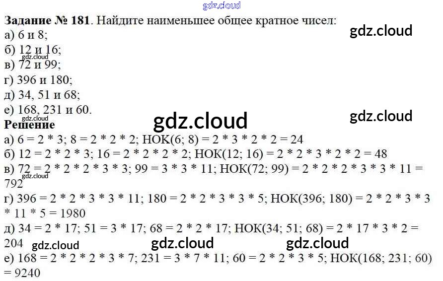 Ответ на задание 181 Учебник Математика за 6 (шестой) класс Виленкин, Жохов, Чесноков, Шварцбурд 2014