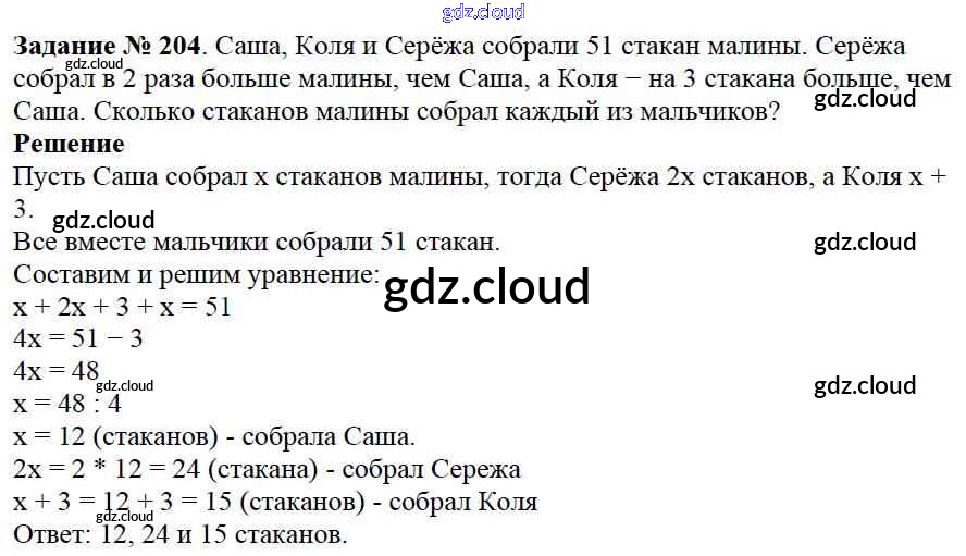 Ответ на задание 204 Учебник Математика за 6 (шестой) класс Виленкин, Жохов, Чесноков, Шварцбурд 2014