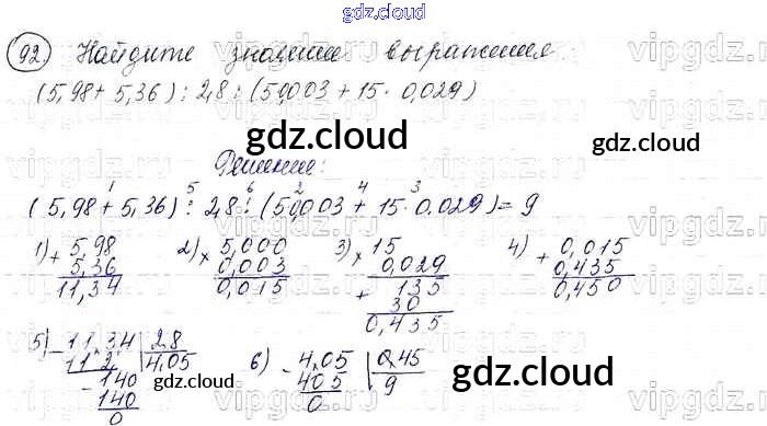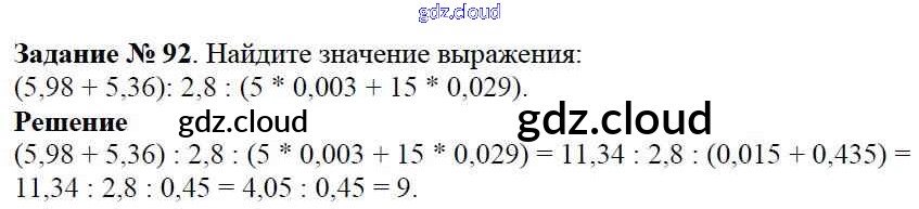 Ответ на задание 92 Учебник Математика за 6 (шестой) класс Виленкин, Жохов, Чесноков, Шварцбурд 2014