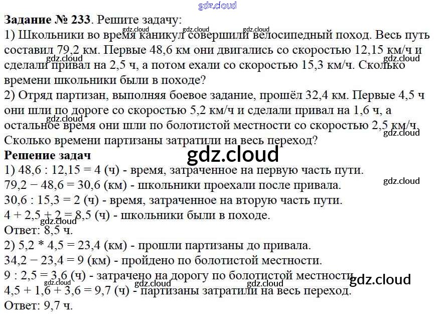 Ответ на задание 233 Учебник Математика за 6 (шестой) класс Виленкин, Жохов, Чесноков, Шварцбурд 2014