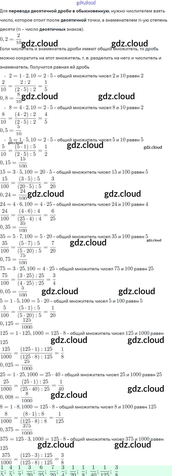 §2. Сложение и вычитание дробей с разными знаменателями Ответы к Главе 1 по Математике 6 класс Учебник Виленкин Мнемозина