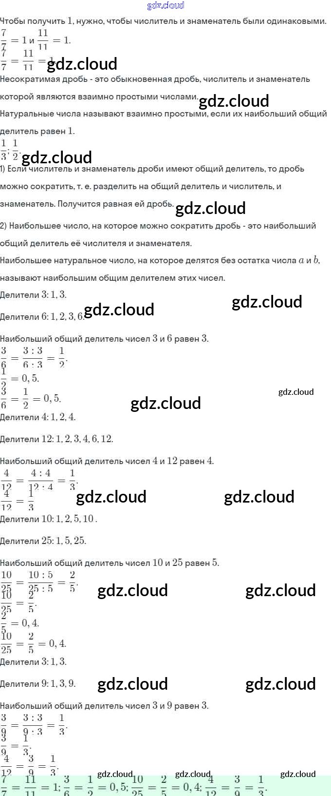 §2. Сложение и вычитание дробей с разными знаменателями Ответы к Главе 1 по Математике 6 класс Учебник Виленкин Мнемозина