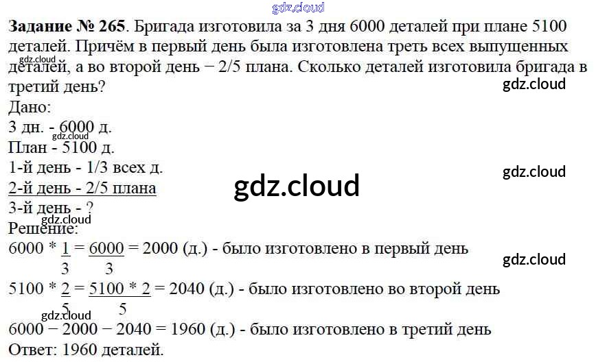 Ответ на задание 265 Учебник Математика за 6 (шестой) класс Виленкин, Жохов, Чесноков, Шварцбурд 2014