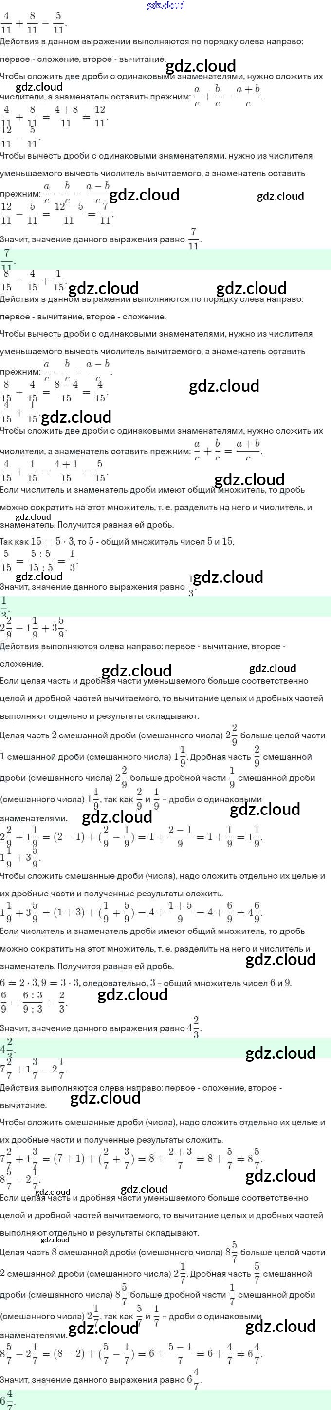 §2. Сложение и вычитание дробей с разными знаменателями Ответы к Главе 1 по Математике 6 класс Учебник Виленкин Мнемозина