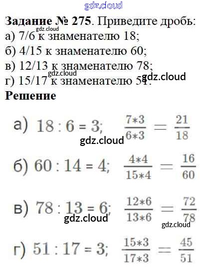 Ответ на задание 275 Учебник Математика за 6 (шестой) класс Виленкин, Жохов, Чесноков, Шварцбурд 2014