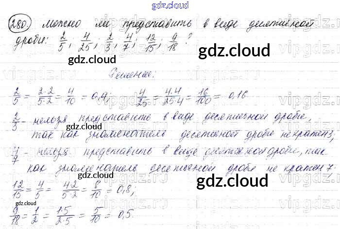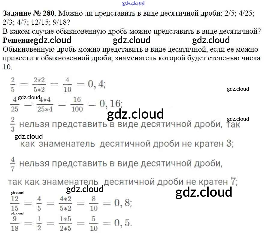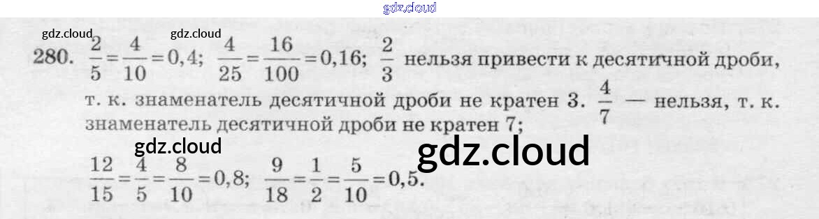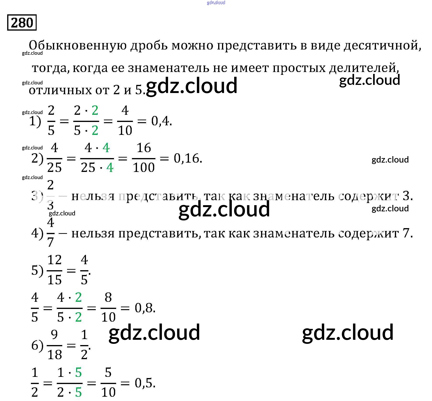 Ответ на задание 280 Учебник Математика за 6 (шестой) класс Виленкин, Жохов, Чесноков, Шварцбурд 2014