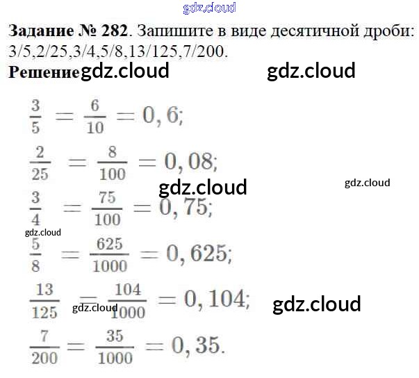 Ответ на задание 282 Учебник Математика за 6 (шестой) класс Виленкин, Жохов, Чесноков, Шварцбурд 2014