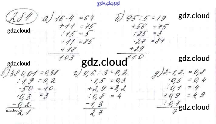 Ответ на задание 284 Учебник Математика за 6 (шестой) класс Виленкин, Жохов, Чесноков, Шварцбурд 2014