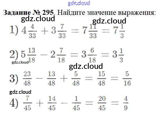Ответ на задание 295 Учебник Математика за 6 (шестой) класс Виленкин, Жохов, Чесноков, Шварцбурд 2014