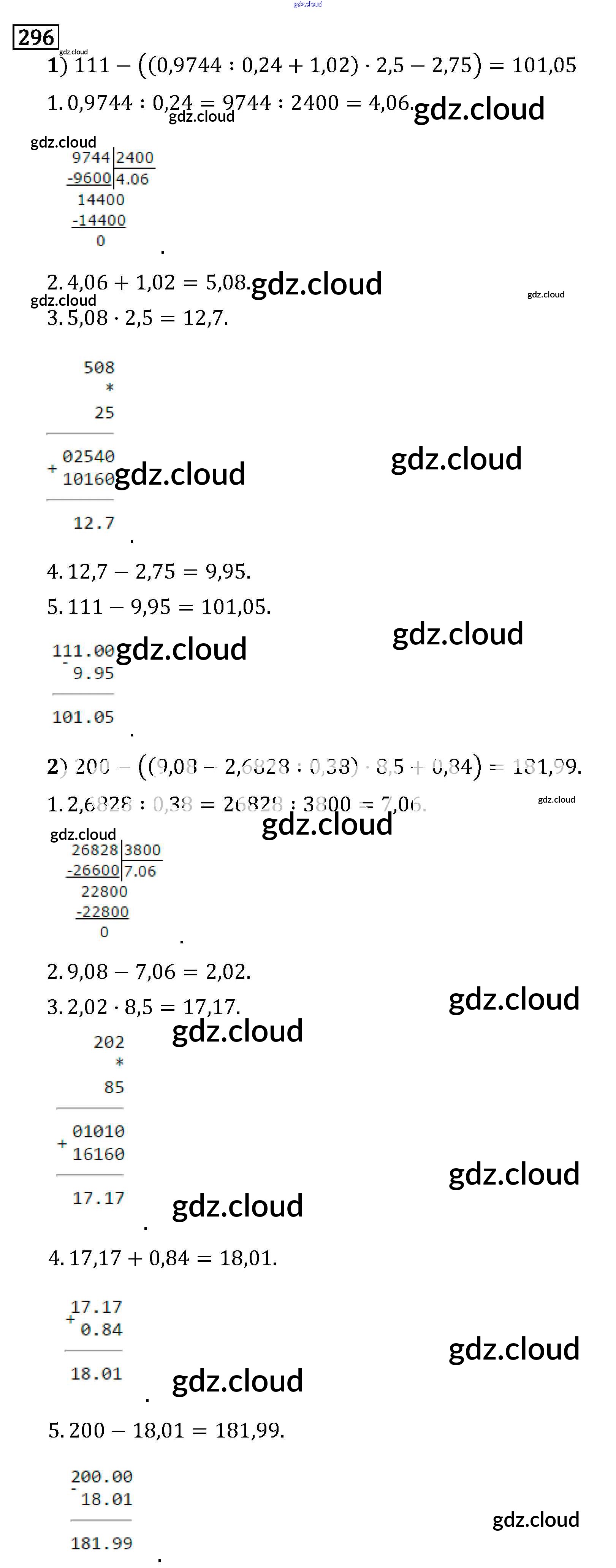 Ответ на задание 296 Учебник Математика за 6 (шестой) класс Виленкин, Жохов, Чесноков, Шварцбурд 2014