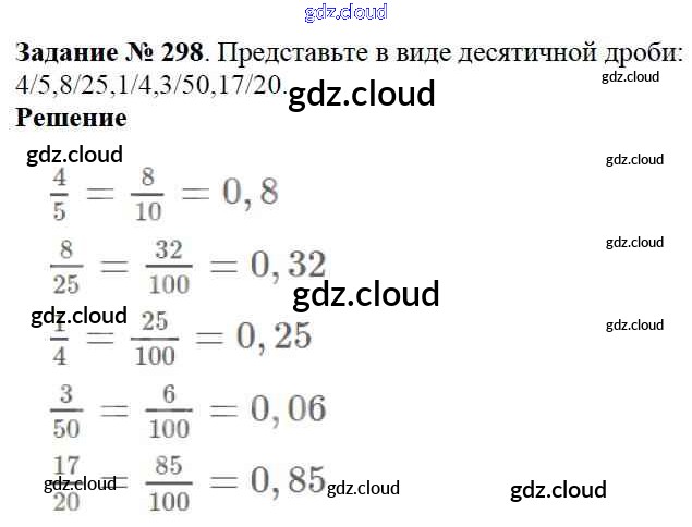 Ответ на задание 298 Учебник Математика за 6 (шестой) класс Виленкин, Жохов, Чесноков, Шварцбурд 2014