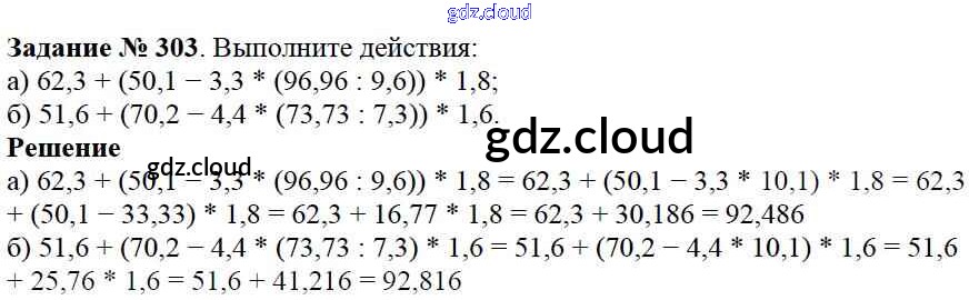 Ответ на задание 303 Учебник Математика за 6 (шестой) класс Виленкин, Жохов, Чесноков, Шварцбурд 2014