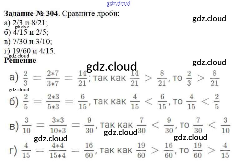 Ответ на задание 304 Учебник Математика за 6 (шестой) класс Виленкин, Жохов, Чесноков, Шварцбурд 2014