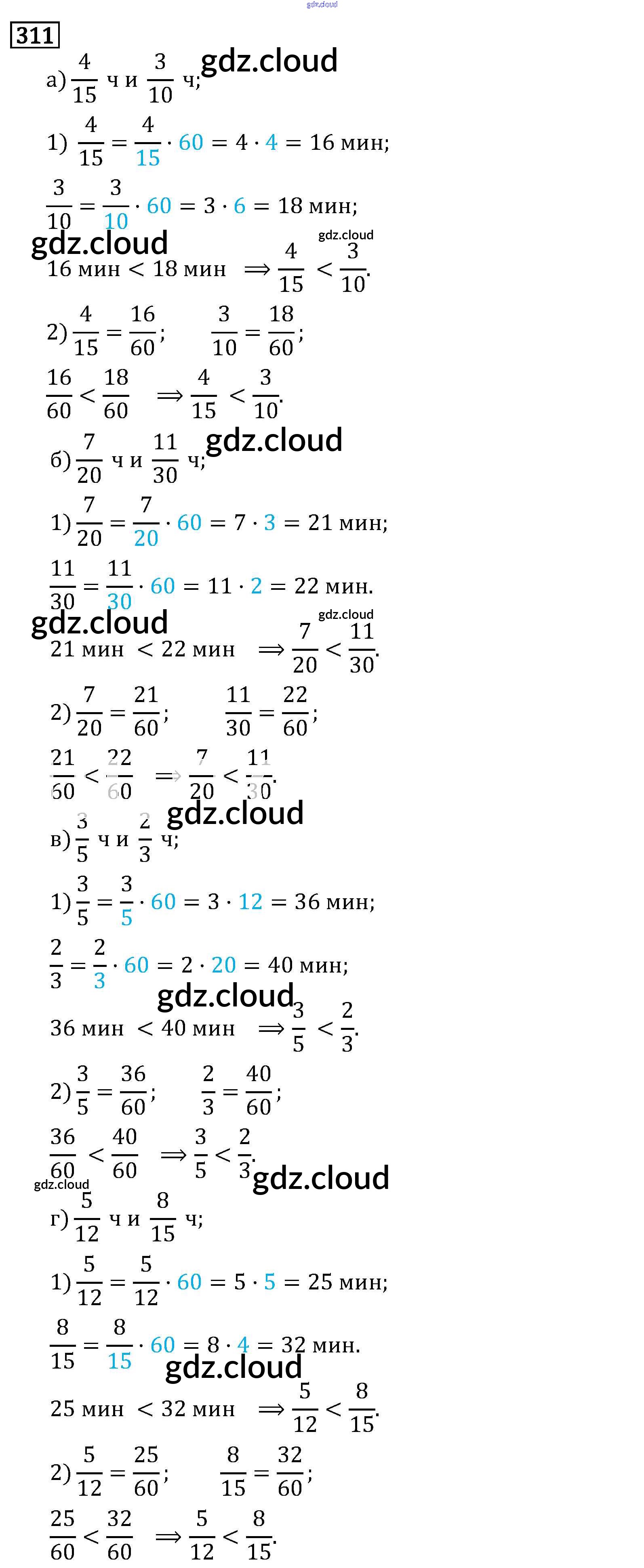Ответ на задание 311 Учебник Математика за 6 (шестой) класс Виленкин, Жохов, Чесноков, Шварцбурд 2014