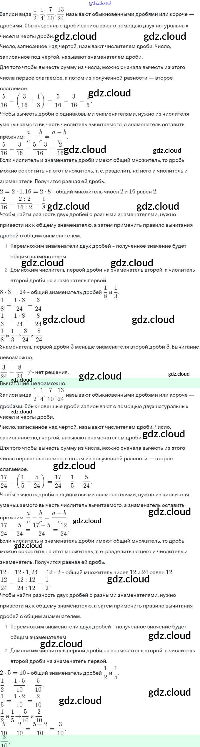 §2. Сложение и вычитание дробей с разными знаменателями Ответы к Главе 1 по Математике 6 класс Учебник Виленкин Мнемозина
