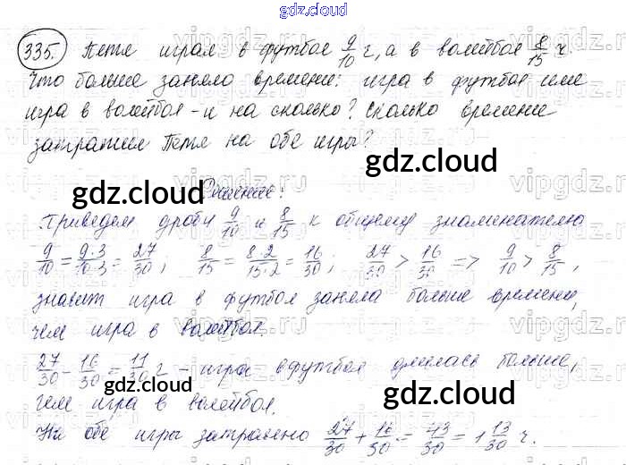 Ответ на задание 335 Учебник Математика за 6 (шестой) класс Виленкин, Жохов, Чесноков, Шварцбурд 2014