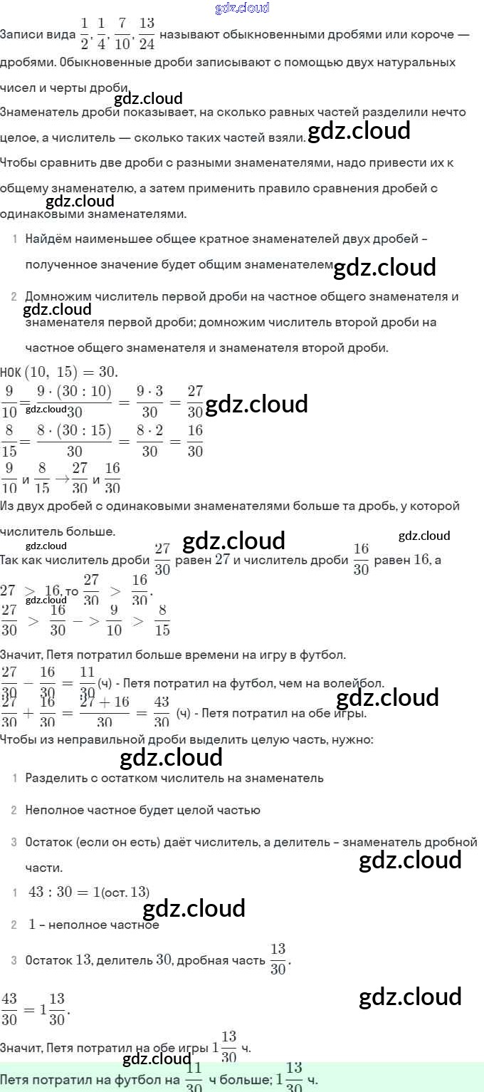 §2. Сложение и вычитание дробей с разными знаменателями Ответы к Главе 1 по Математике 6 класс Учебник Виленкин Мнемозина