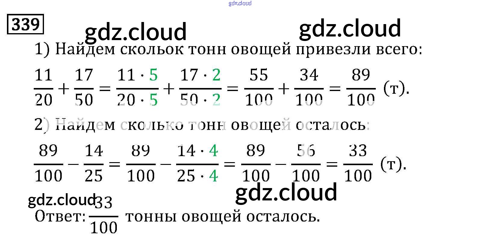 Ответ на задание 339 Учебник Математика за 6 (шестой) класс Виленкин, Жохов, Чесноков, Шварцбурд 2014