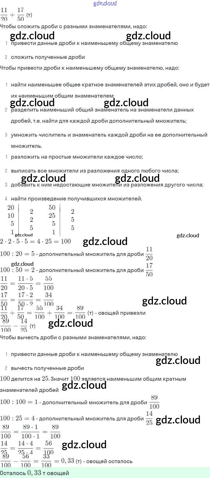§2. Сложение и вычитание дробей с разными знаменателями Ответы к Главе 1 по Математике 6 класс Учебник Виленкин Мнемозина