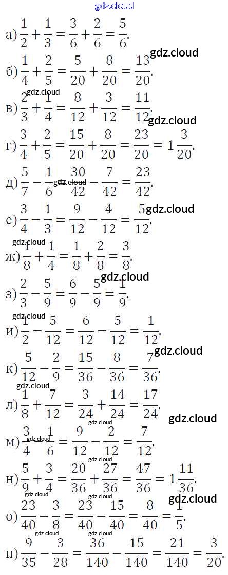 §2. Сложение и вычитание дробей с разными знаменателями Ответы к Главе 1 по Математике 6 класс Учебник Виленкин Мнемозина
