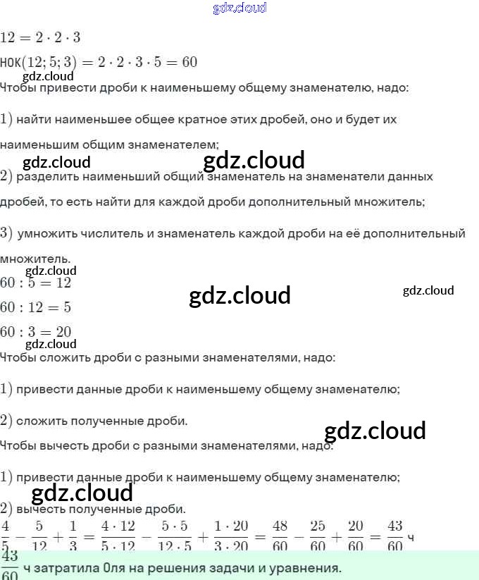 §2. Сложение и вычитание дробей с разными знаменателями Ответы к Главе 1 по Математике 6 класс Учебник Виленкин Мнемозина