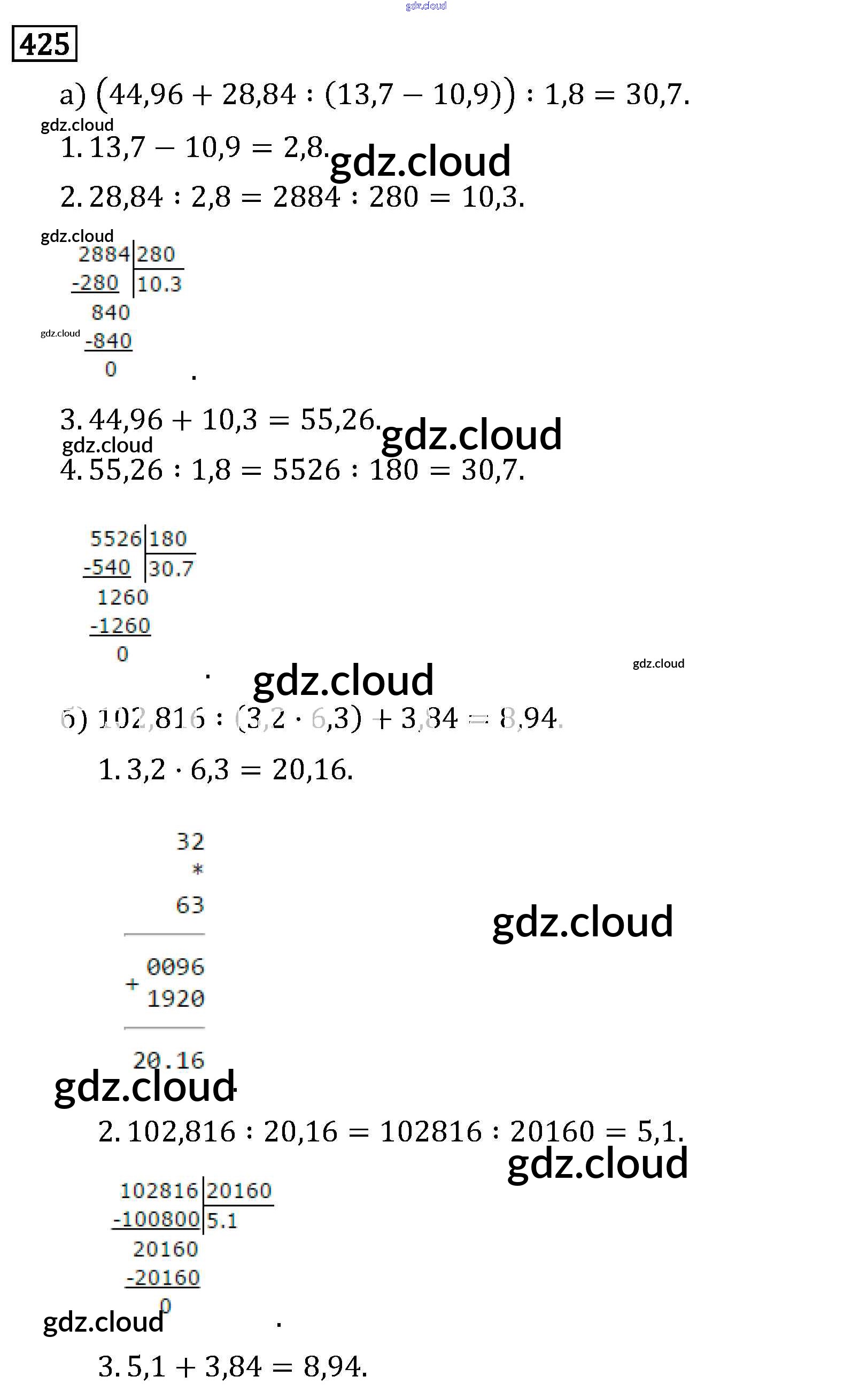 Ответ на задание 425 Учебник Математика за 6 (шестой) класс Виленкин, Жохов, Чесноков, Шварцбурд 2014