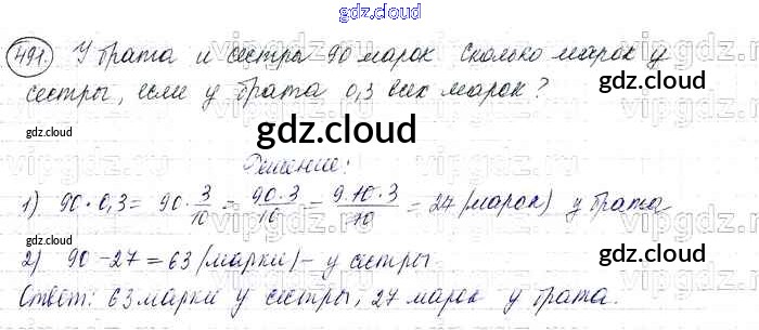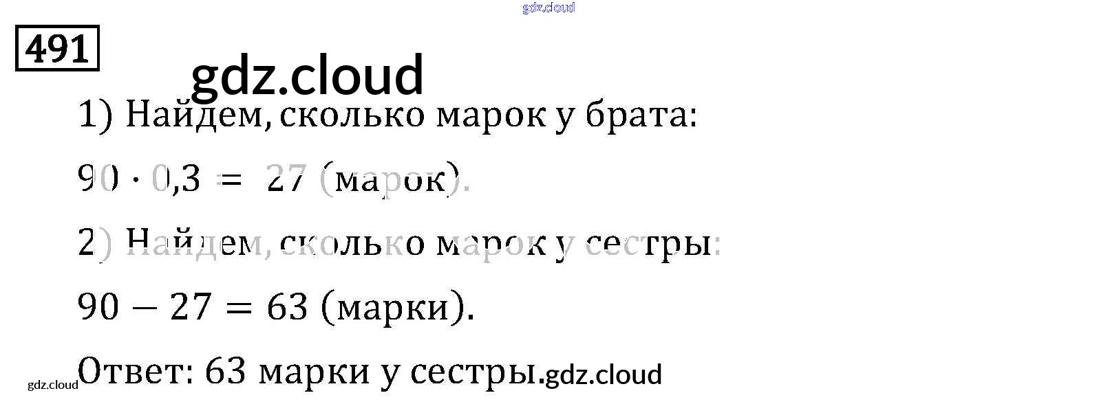 Ответ на задание 491 Учебник Математика за 6 (шестой) класс Виленкин, Жохов, Чесноков, Шварцбурд 2014