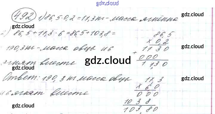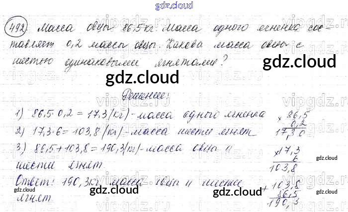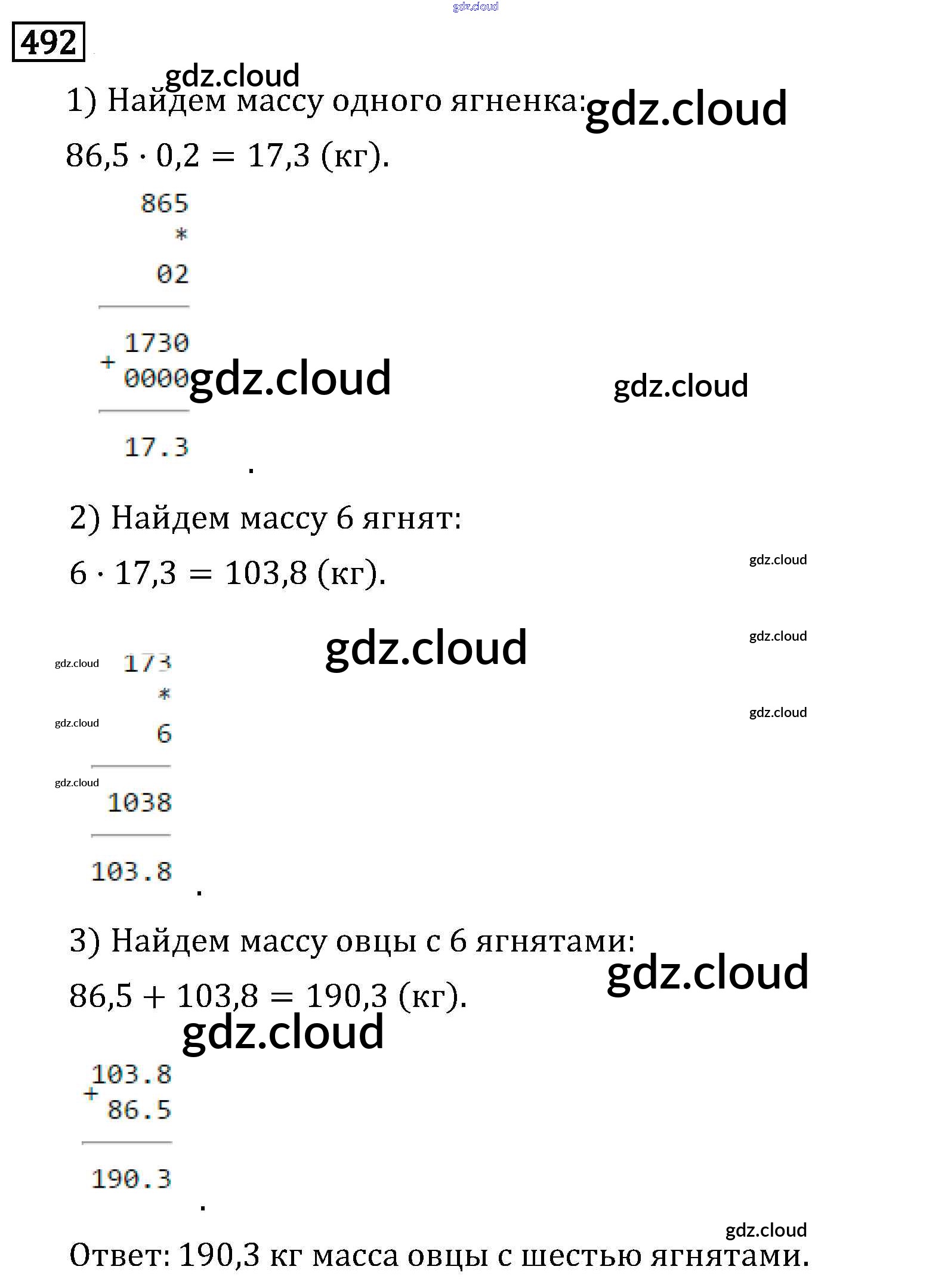 Ответ на задание 492 Учебник Математика за 6 (шестой) класс Виленкин, Жохов, Чесноков, Шварцбурд 2014