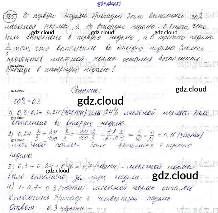 Ответ на задание 505 Учебник Математика за 6 (шестой) класс Виленкин, Жохов, Чесноков, Шварцбурд 2014