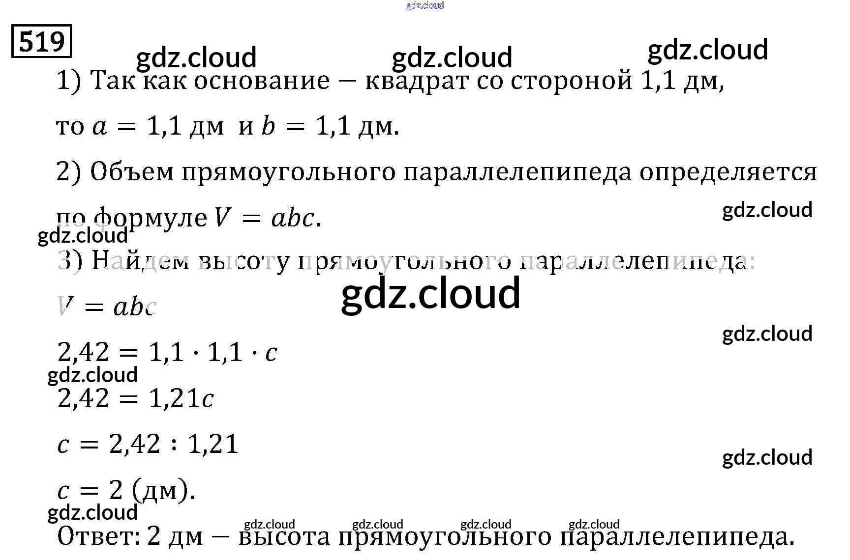 Ответ на задание 519 Учебник Математика за 6 (шестой) класс Виленкин, Жохов, Чесноков, Шварцбурд 2014