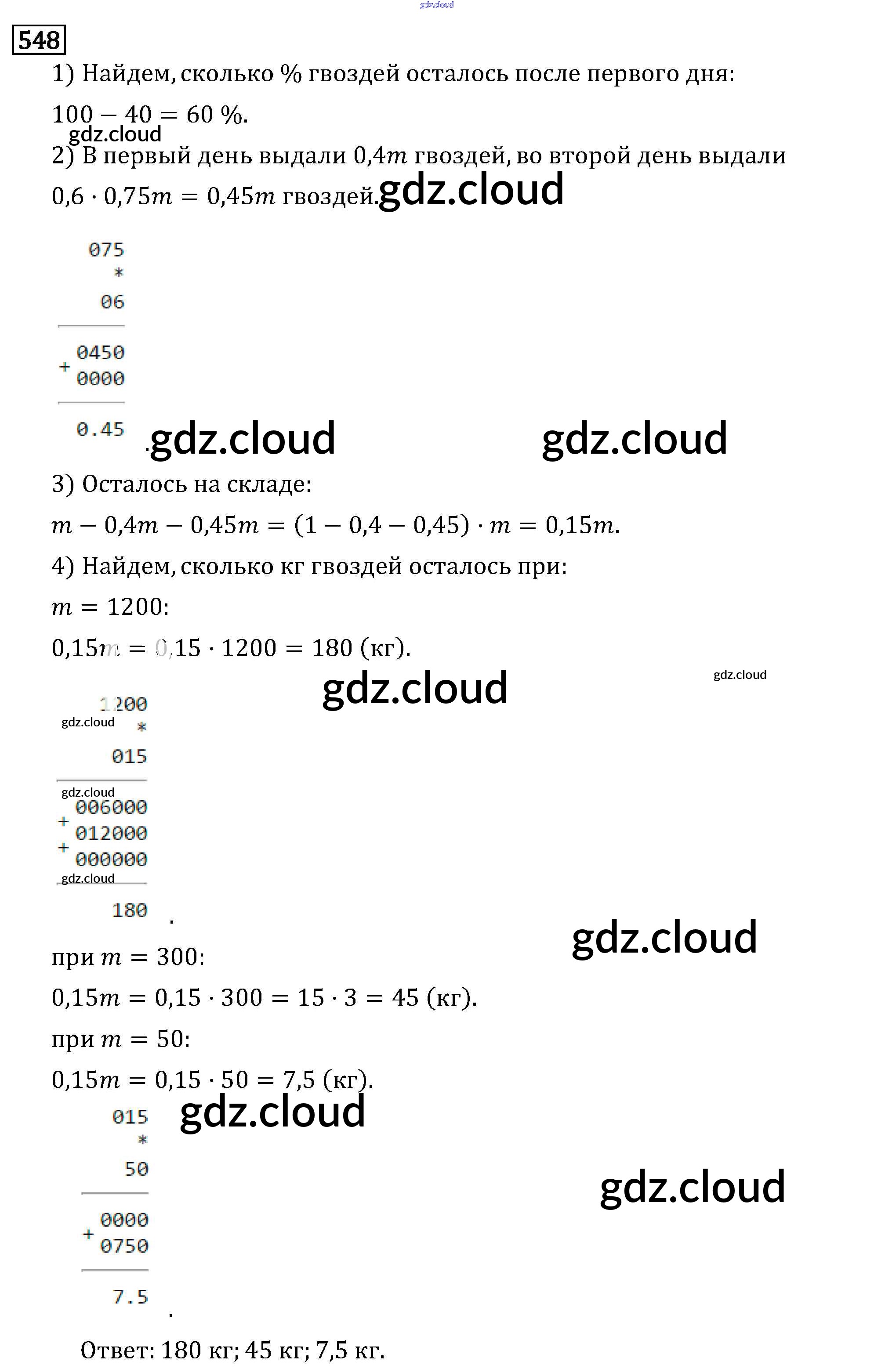 Ответ на задание 548 Учебник Математика за 6 (шестой) класс Виленкин, Жохов, Чесноков, Шварцбурд 2014