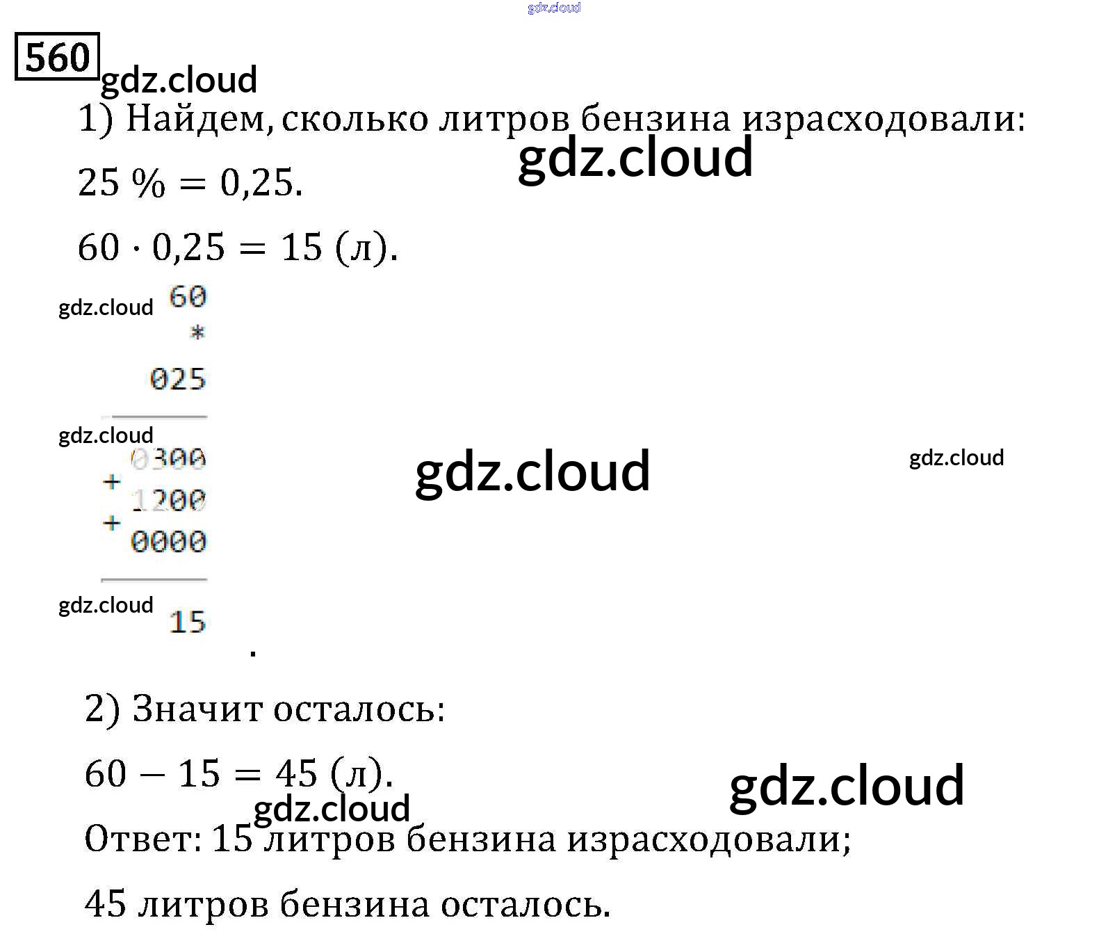 Ответ на задание 560 Учебник Математика за 6 (шестой) класс Виленкин, Жохов, Чесноков, Шварцбурд 2014
