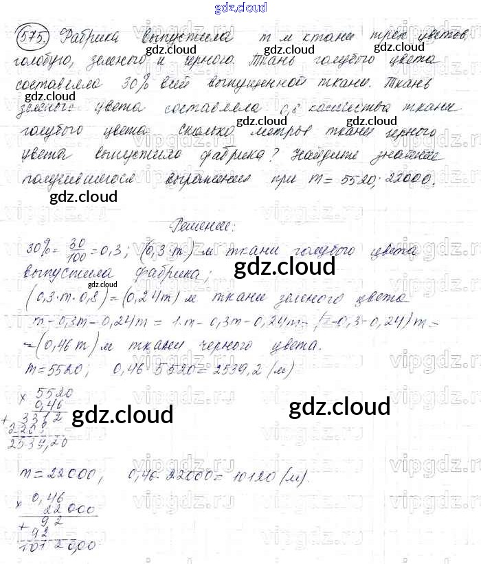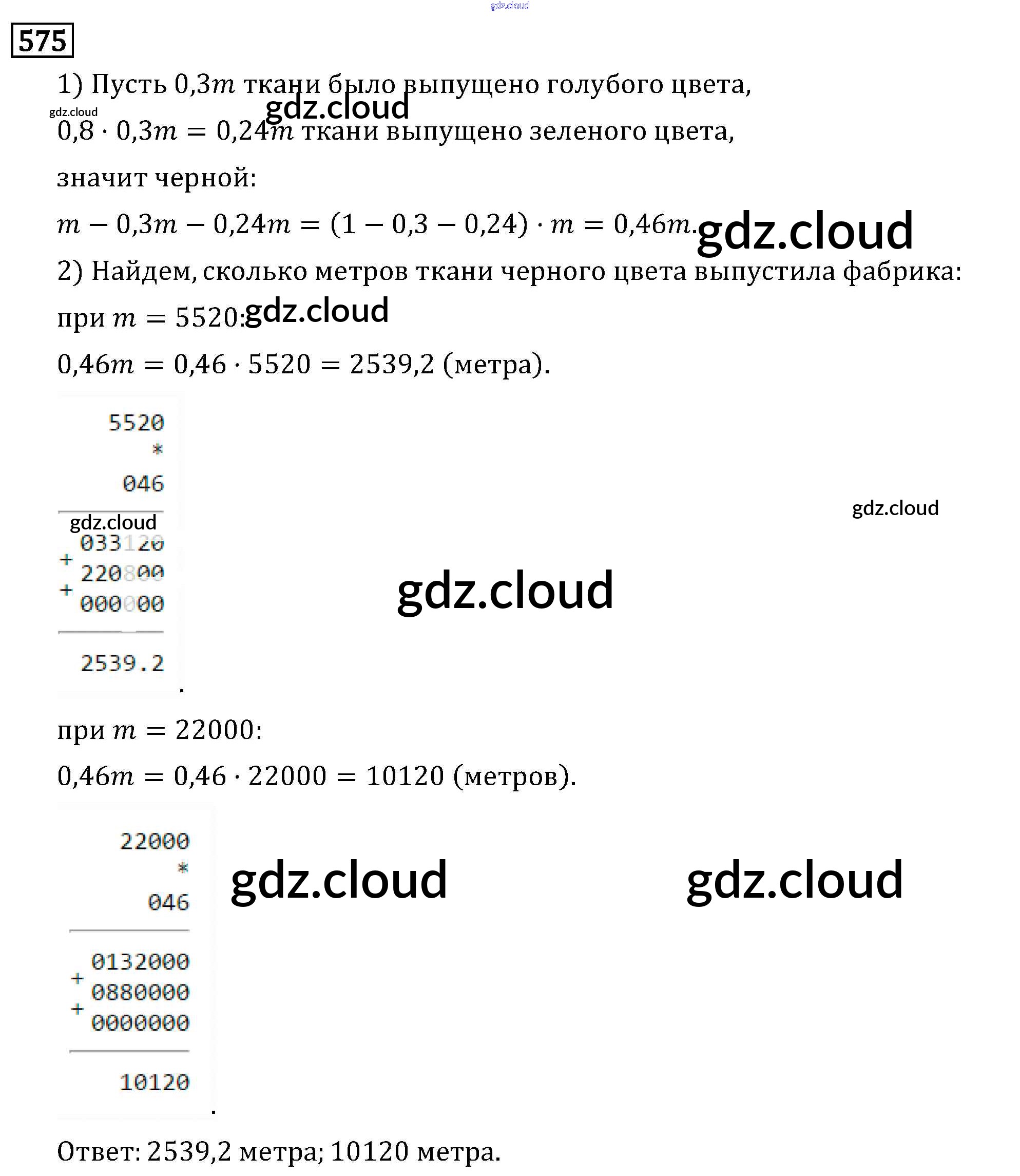 Ответ на задание 575 Учебник Математика за 6 (шестой) класс Виленкин, Жохов, Чесноков, Шварцбурд 2014