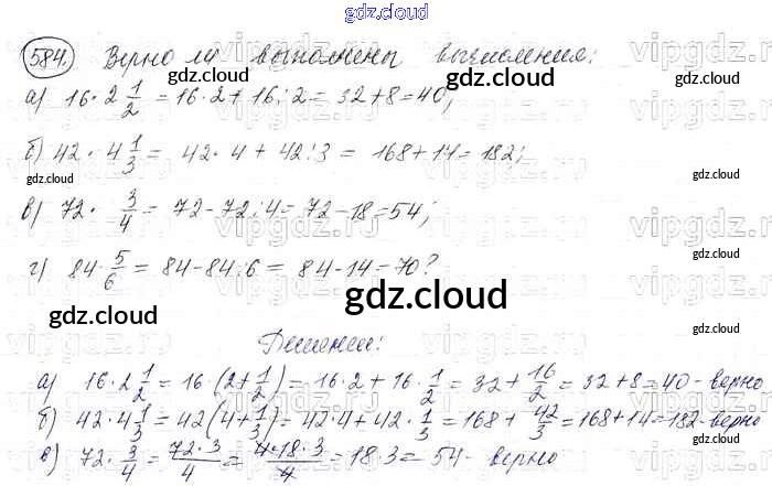 Ответ на задание 584 Учебник Математика за 6 (шестой) класс Виленкин, Жохов, Чесноков, Шварцбурд 2014