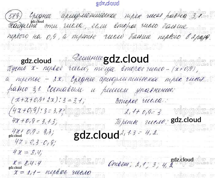 Ответ на задание 589 Учебник Математика за 6 (шестой) класс Виленкин, Жохов, Чесноков, Шварцбурд 2014