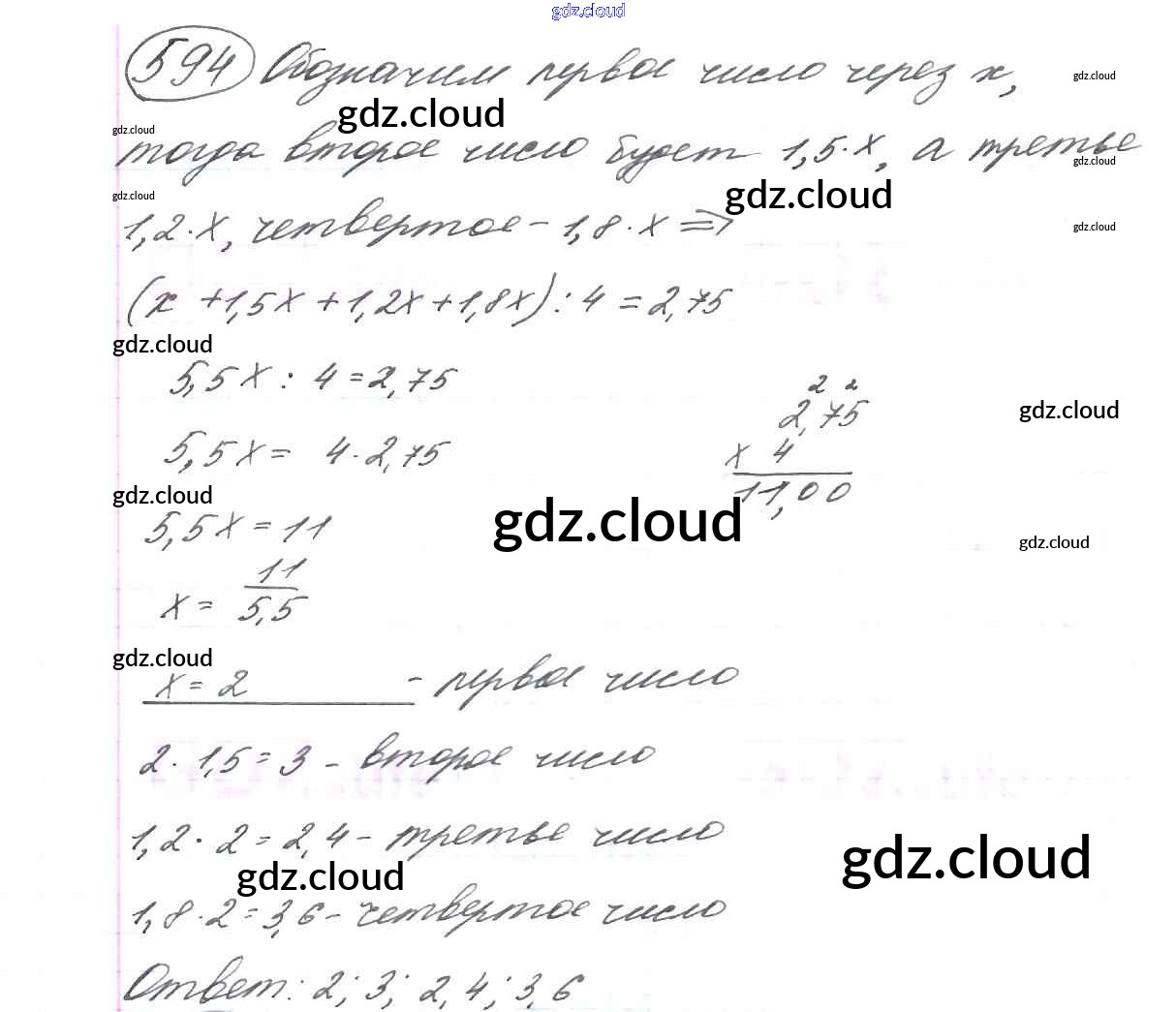 Ответ на задание 594 Учебник Математика за 6 (шестой) класс Виленкин, Жохов, Чесноков, Шварцбурд 2014
