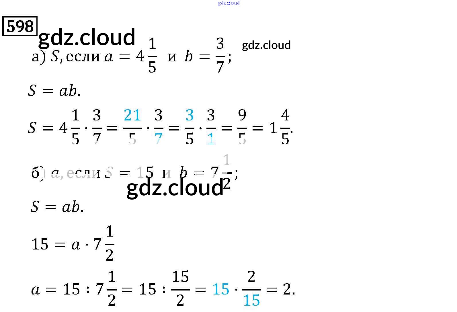 Ответ на задание 598 Учебник Математика за 6 (шестой) класс Виленкин, Жохов, Чесноков, Шварцбурд 2014