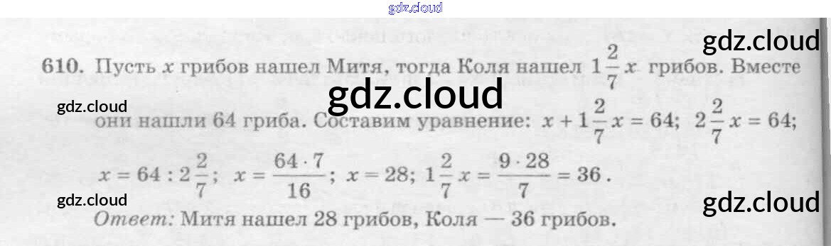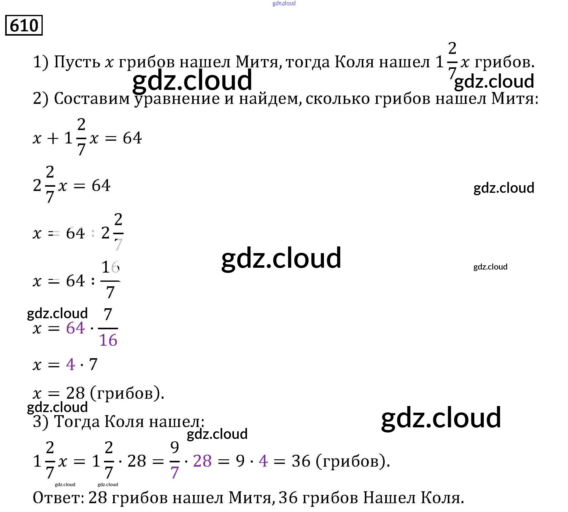 Ответ на задание 610 Учебник Математика за 6 (шестой) класс Виленкин, Жохов, Чесноков, Шварцбурд 2014