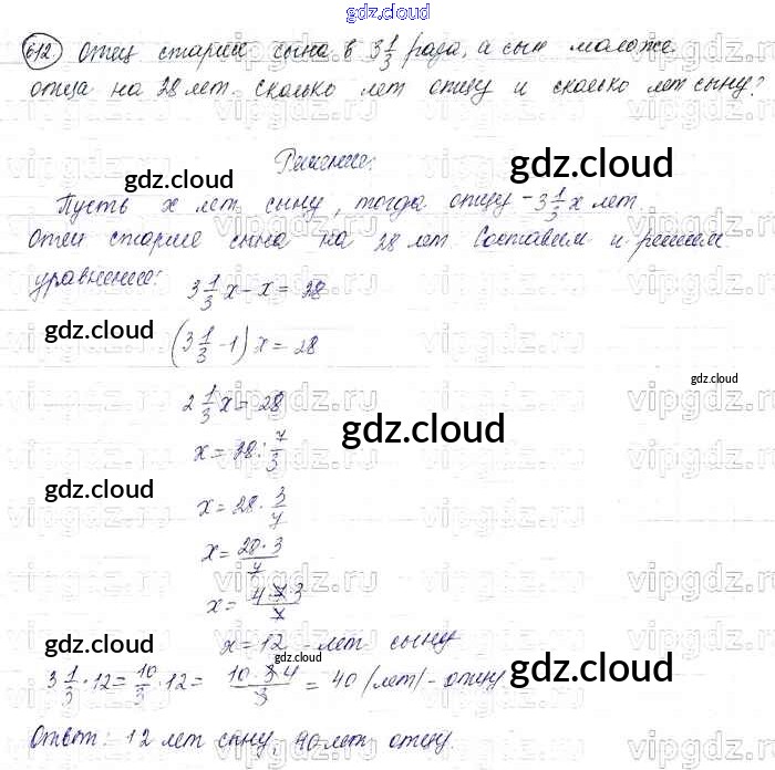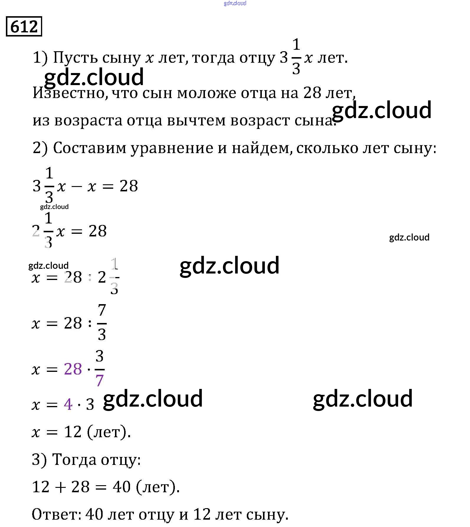 Ответ на задание 612 Учебник Математика за 6 (шестой) класс Виленкин, Жохов, Чесноков, Шварцбурд 2014