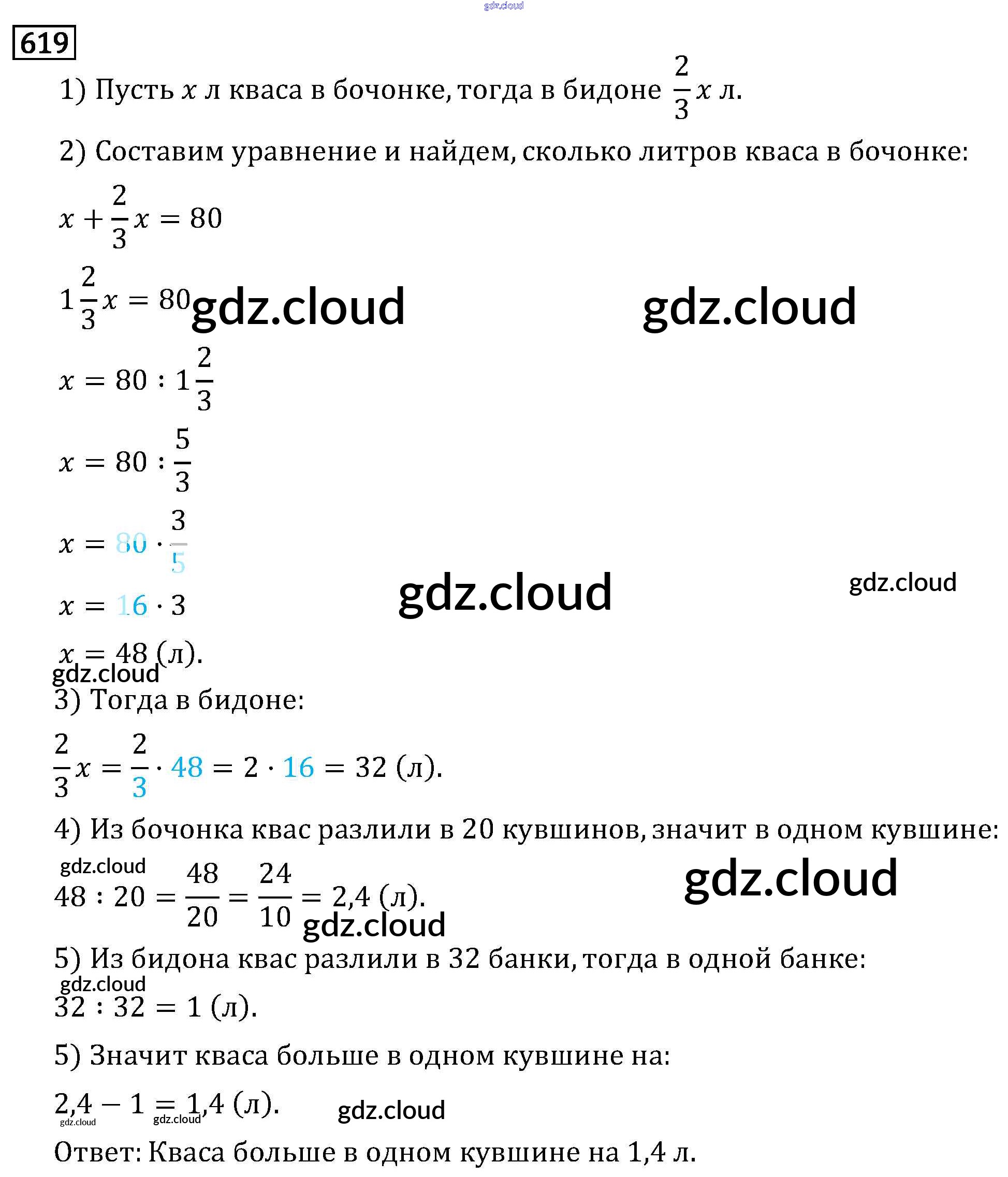 Ответ на задание 619 Учебник Математика за 6 (шестой) класс Виленкин, Жохов, Чесноков, Шварцбурд 2014