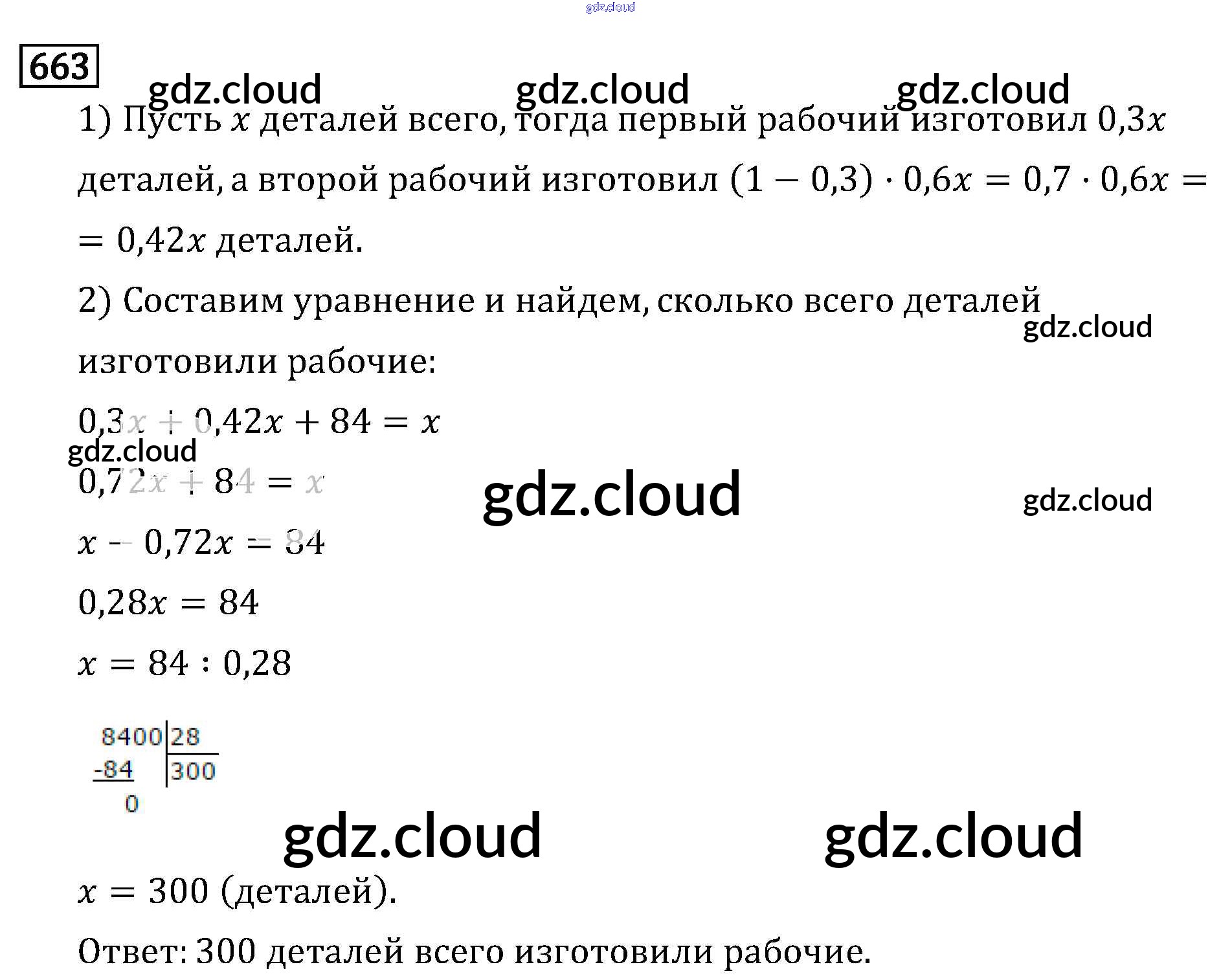 Ответ на задание 663 Учебник Математика за 6 (шестой) класс Виленкин, Жохов, Чесноков, Шварцбурд 2014