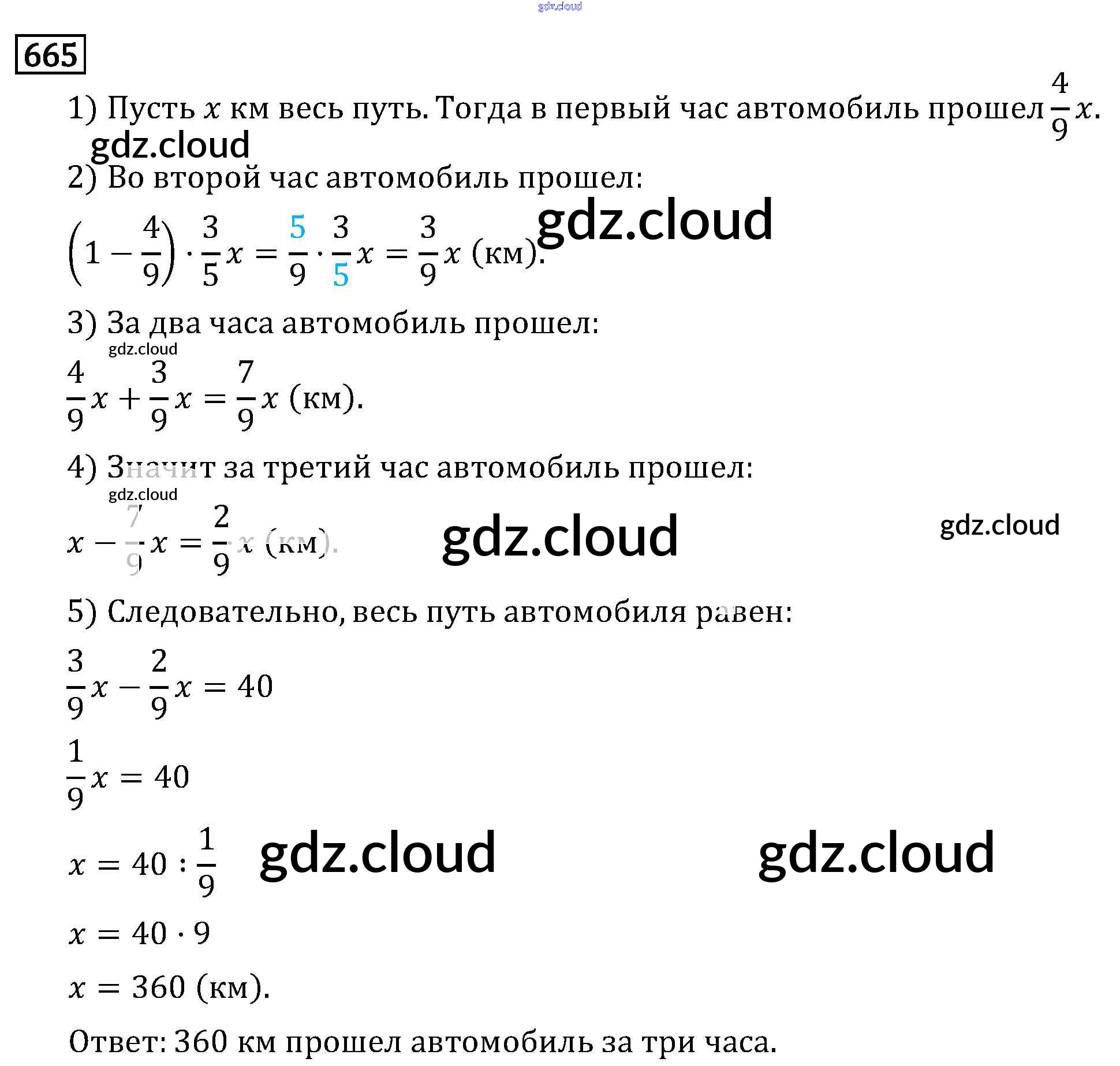 Ответ на задание 665 Учебник Математика за 6 (шестой) класс Виленкин, Жохов, Чесноков, Шварцбурд 2014