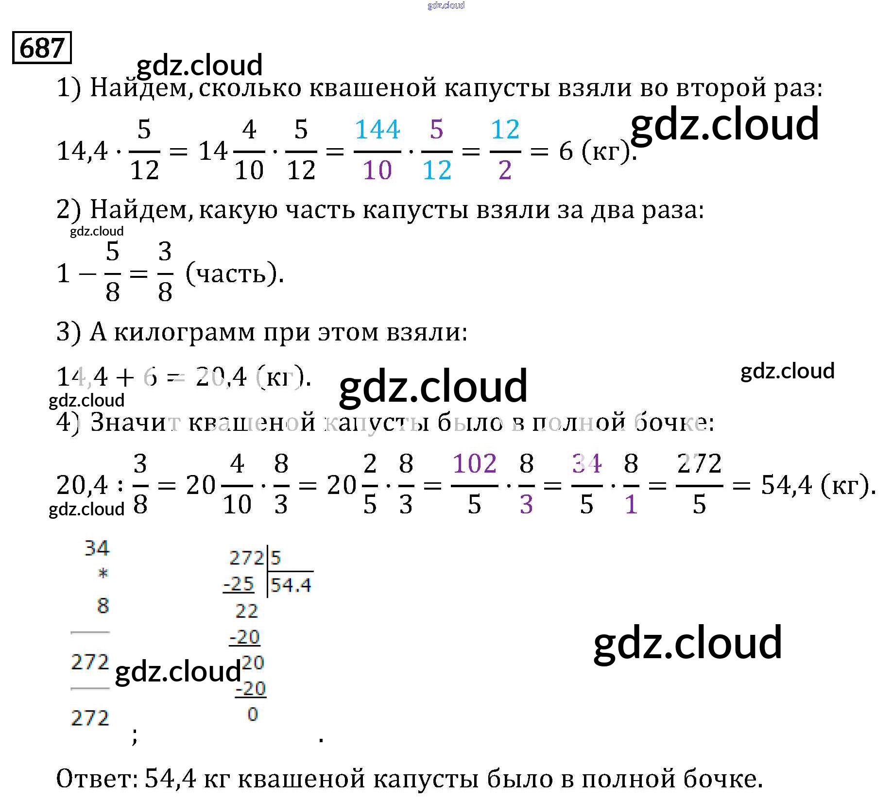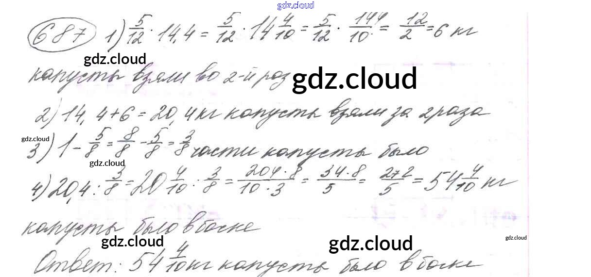 Ответ на задание 687 Учебник Математика за 6 (шестой) класс Виленкин, Жохов, Чесноков, Шварцбурд 2014