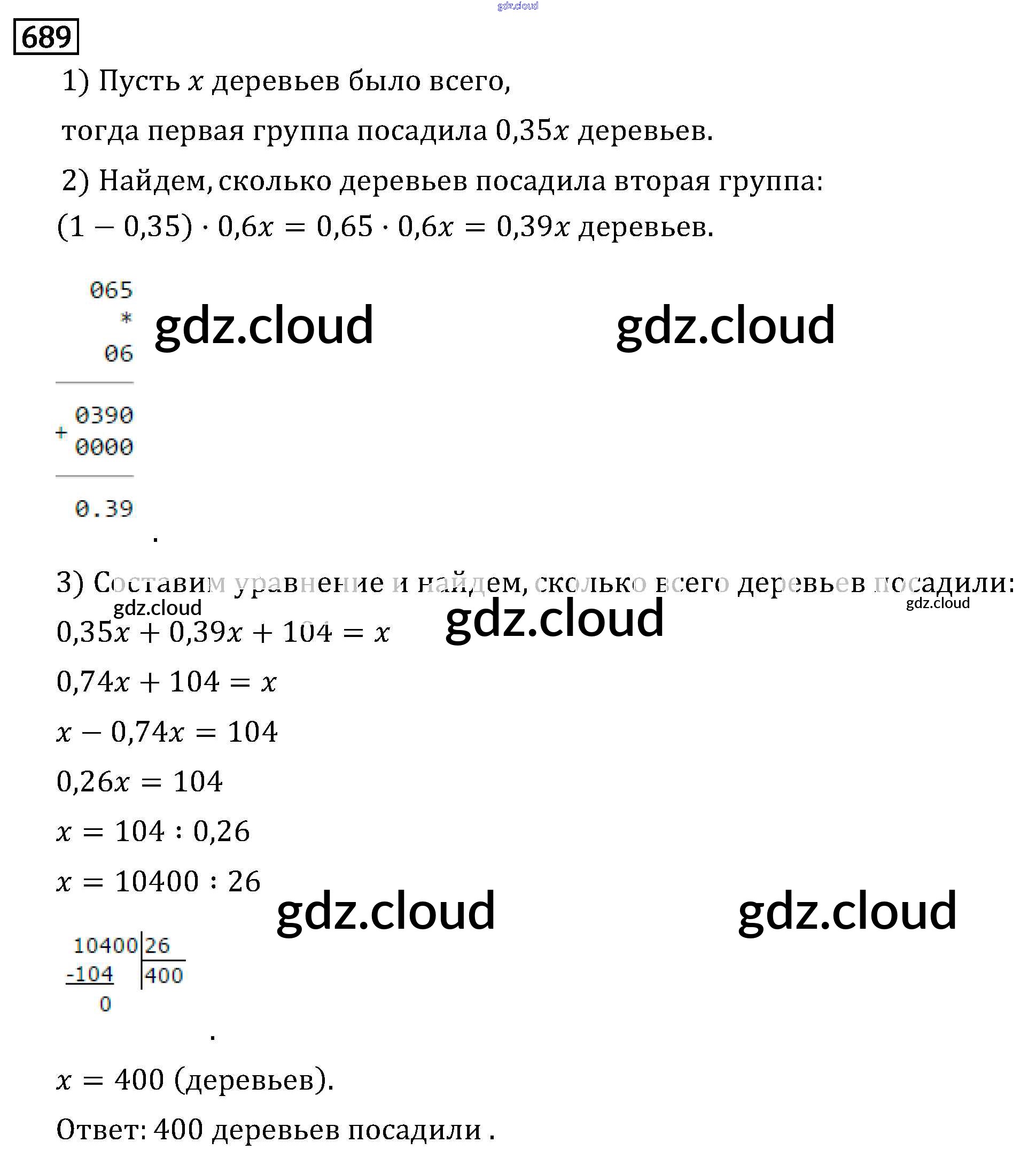 Ответ на задание 689 Учебник Математика за 6 (шестой) класс Виленкин, Жохов, Чесноков, Шварцбурд 2014