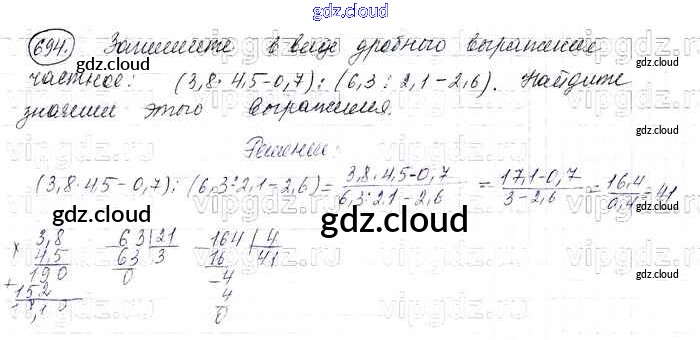 Ответ на задание 694 Учебник Математика за 6 (шестой) класс Виленкин, Жохов, Чесноков, Шварцбурд 2014