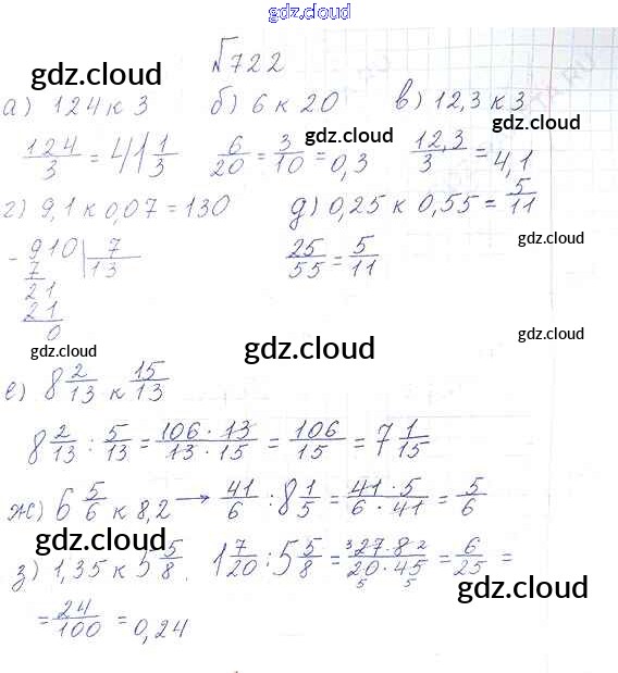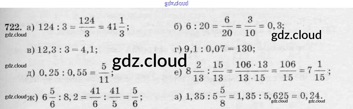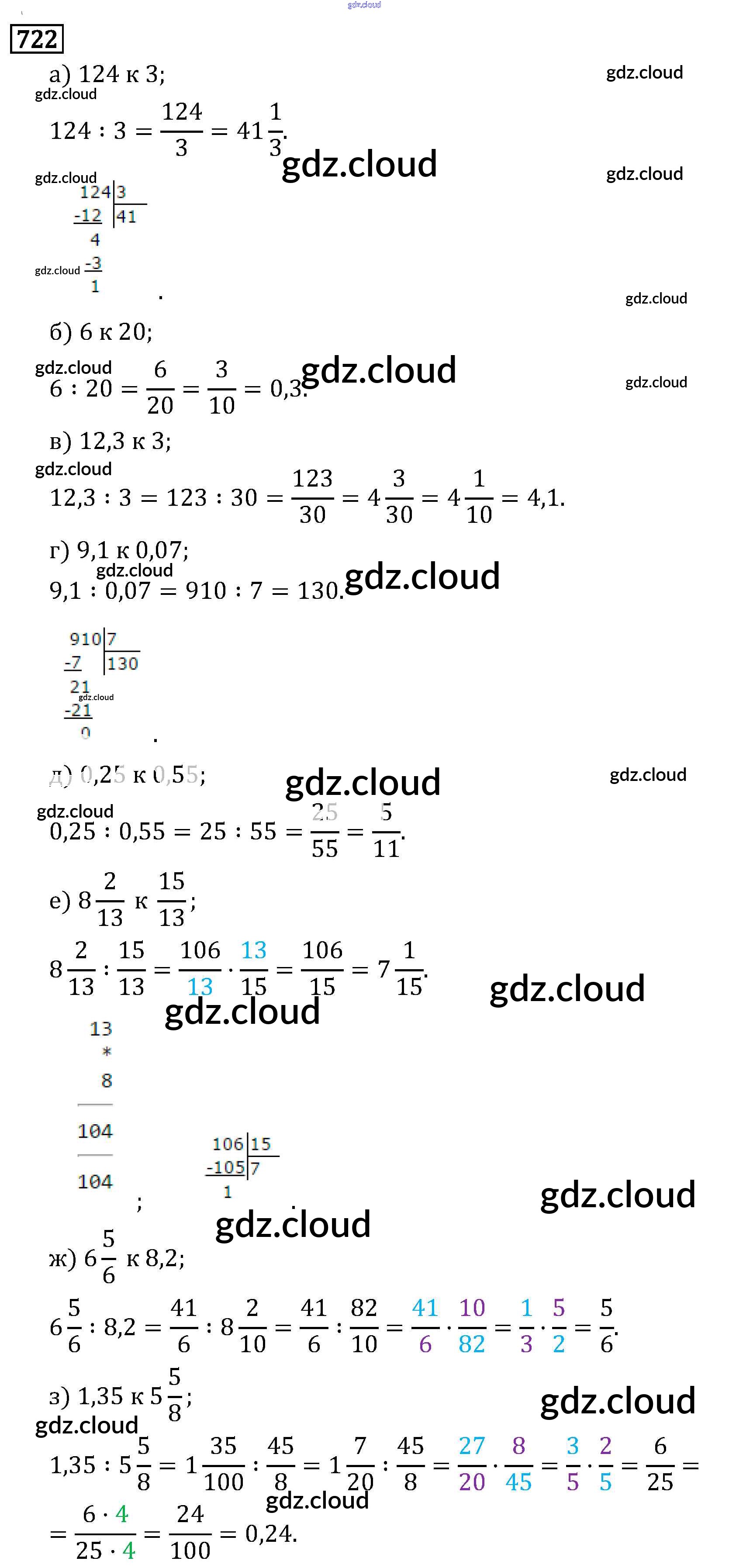 Ответ на задание 722 Учебник Математика за 6 (шестой) класс Виленкин, Жохов, Чесноков, Шварцбурд 2014