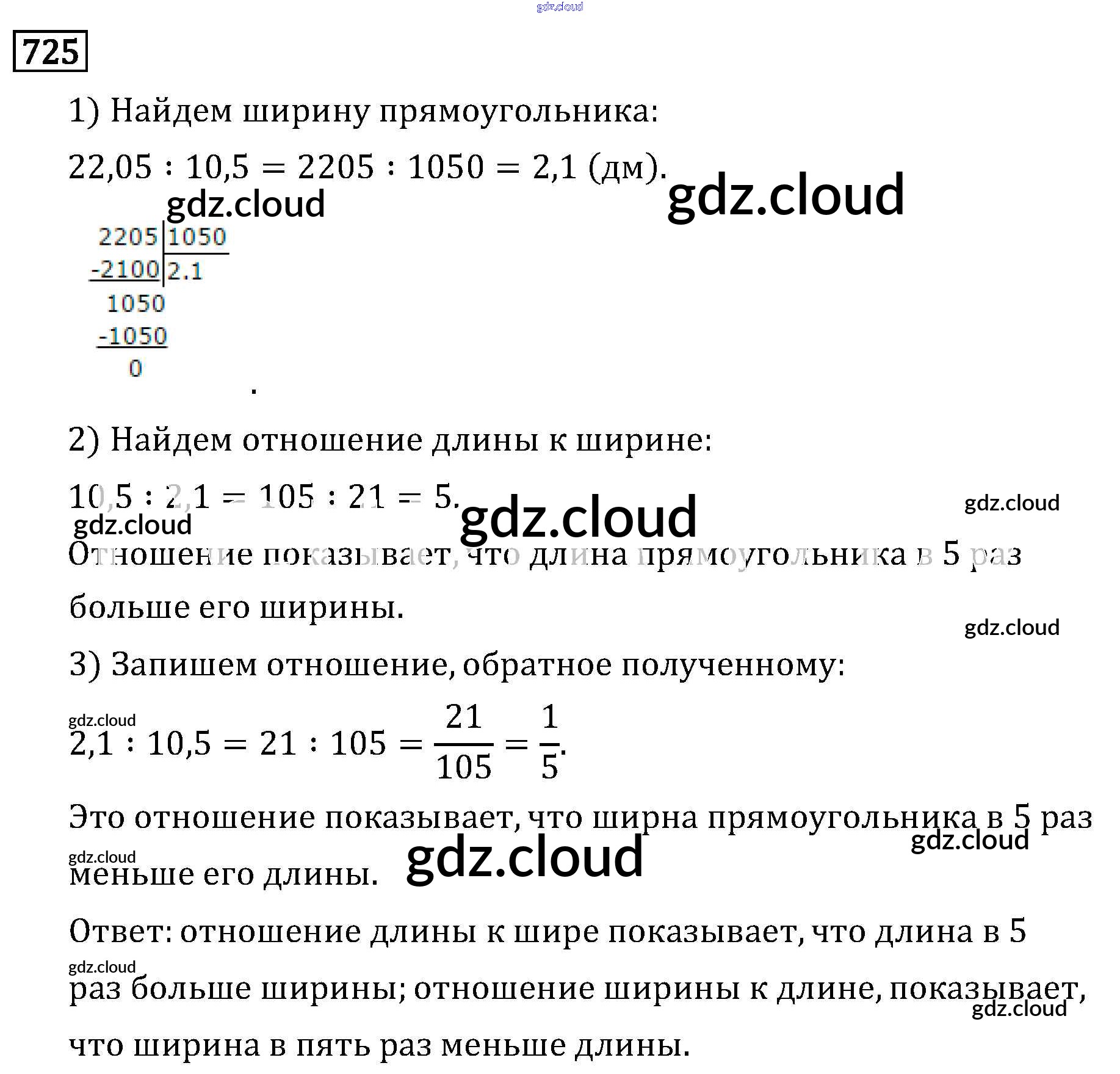 Ответ на задание 725 Учебник Математика за 6 (шестой) класс Виленкин, Жохов, Чесноков, Шварцбурд 2014