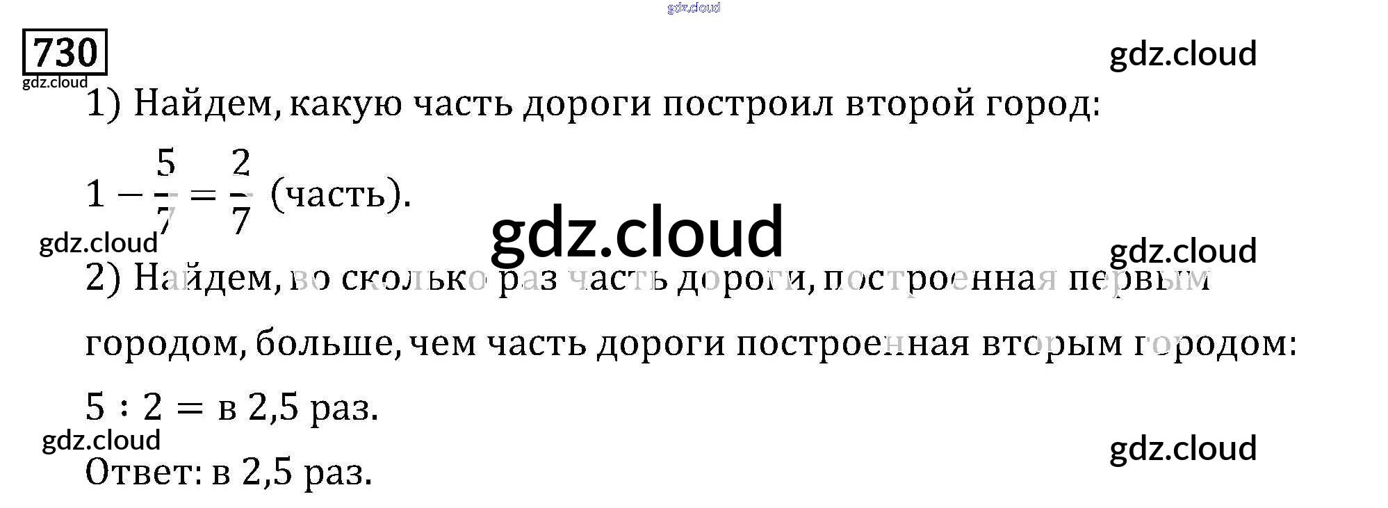 Ответ на задание 730 Учебник Математика за 6 (шестой) класс Виленкин, Жохов, Чесноков, Шварцбурд 2014