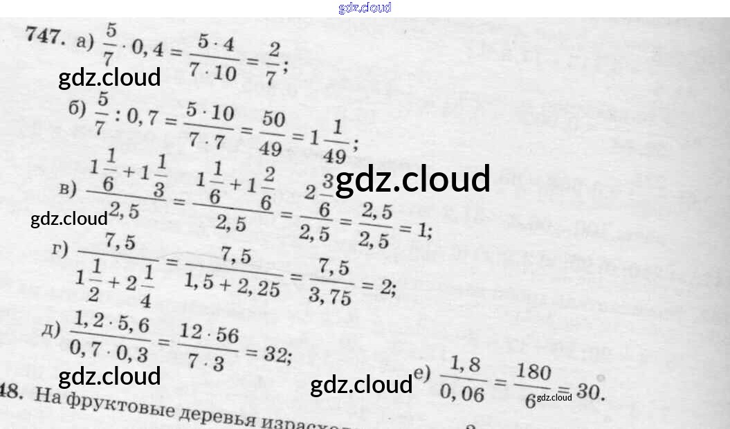 Ответ на задание 747 Учебник Математика за 6 (шестой) класс Виленкин, Жохов, Чесноков, Шварцбурд 2014